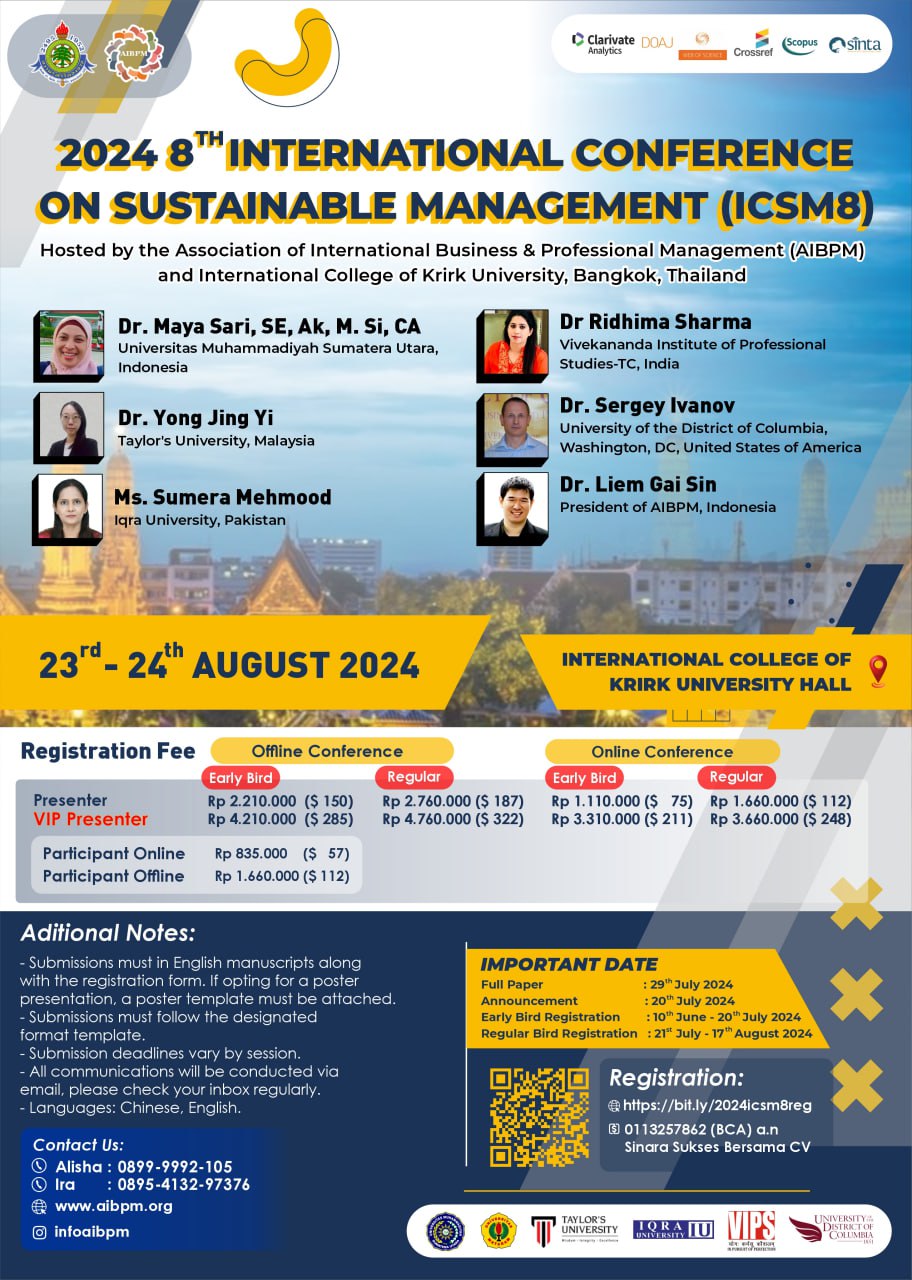 Get ready for the 2024 8th International Conference on Sustainable Management (ICSM8)!🔥